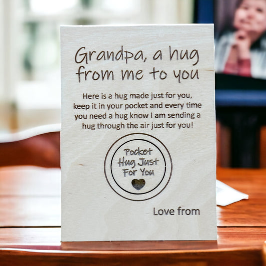 Pocket Hug, Grandpa Hug Card, Fathers Day Gift, Pocket Token, Missing You, Birthday Gift For Grandpa, Thinking of Grand Father