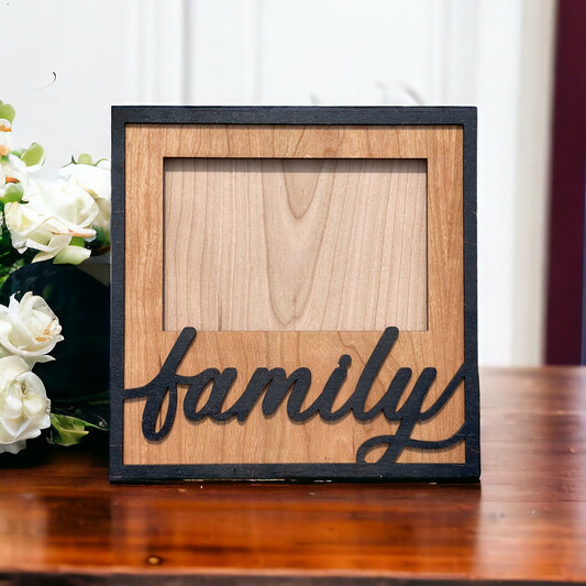 Family Picture Frame for 4" x 6" photo - Handmade Cherry Wood - Gift For Parents, Grand Parents, Kids, Children - Birthday Gift - I Love You