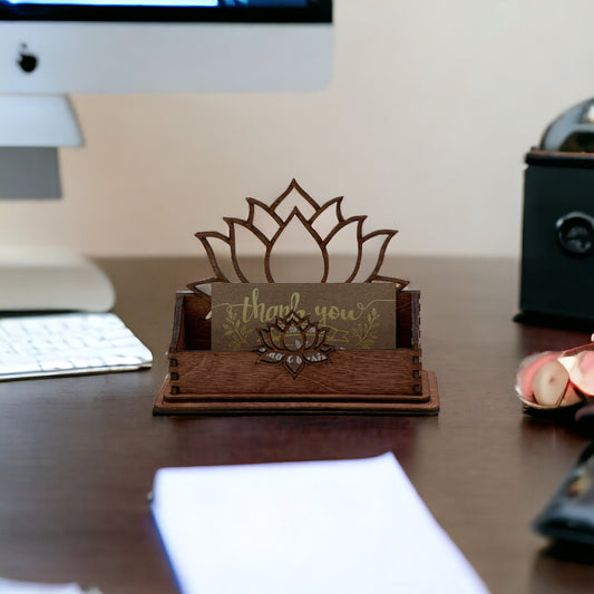 Wood Business Card Holder, Lotus Flower Office Supplies, New Age, Desk Organization, Gift For Reiki, Gift for Spa Owner