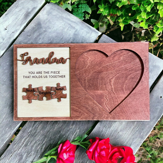 Grandma Engraved Wood Frame - Personalized Grandma Frame - Sign for Grandmother's Home - Mothers Day Gift - Piece That Holds Us Together